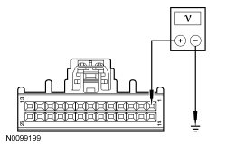 - With the engine running, measure the voltage between ground and HVAC module C228A-1, circuit SBP15 (WH/RD), harness side.