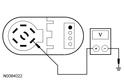 - Measure the voltage between the trailer tow C4099-5, circuit CAT14 (OG), harness side and ground.