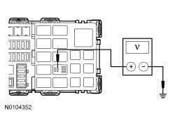 - Measure the voltage between the trailer battery charge relay pin 2, circuit CBP33 (WH/BN), BJB (Battery Junction Box) face side and ground.