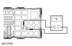 - Measure the voltage between the trailer battery charge relay pin 5, circuit SBB30 (BN/RD), BJB (Battery Junction Box) face side and the trailer battery charge relay pin 1, circuit GD120 (BK/GN), BJB (Battery Junction Box) face side.
