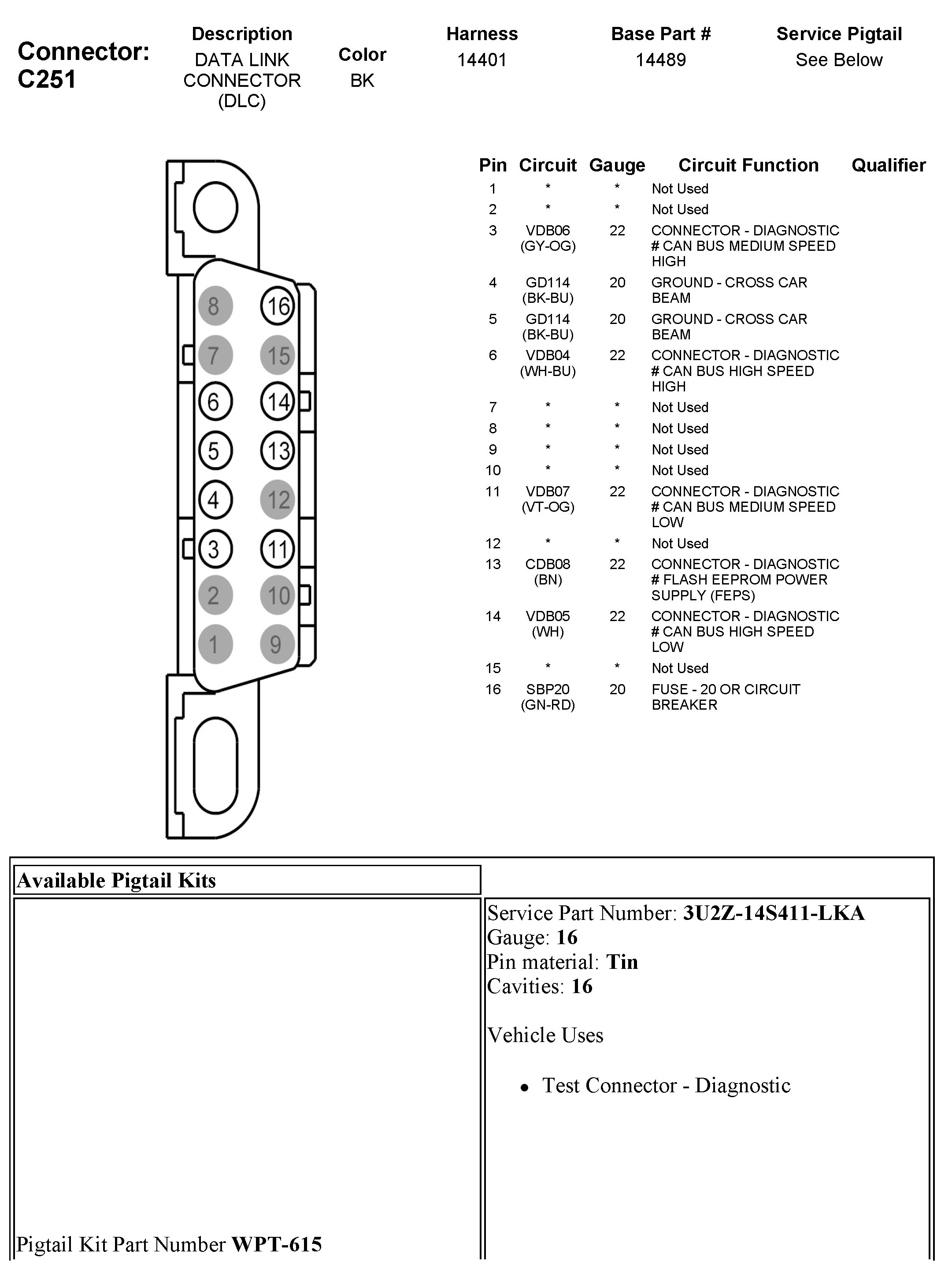 Data Link Connector: Diagrams