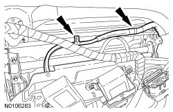 25. Route and attach the DVD player wire harness and attach the retainers. For correct passenger seat wire harness routing, refer to the General Procedures portion of Seats.