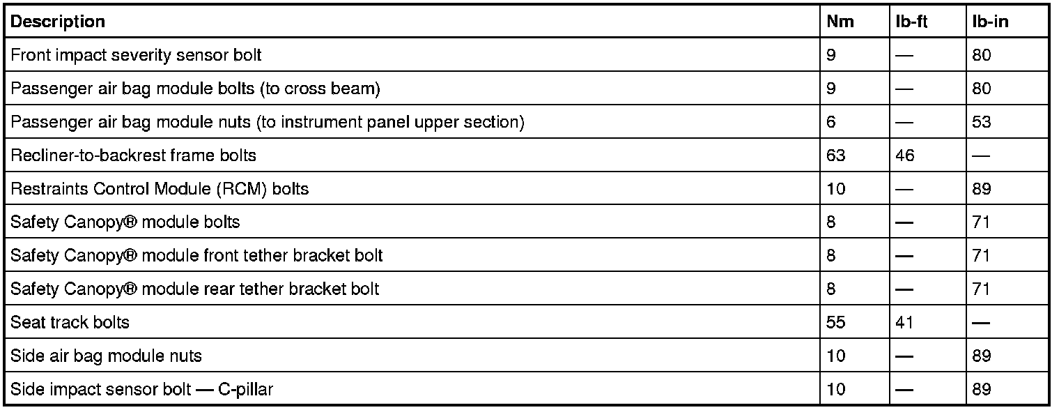 Torque Specifications