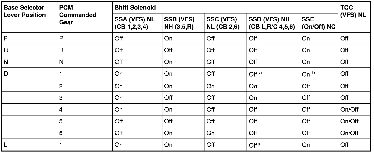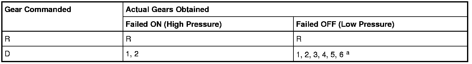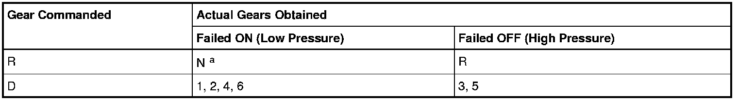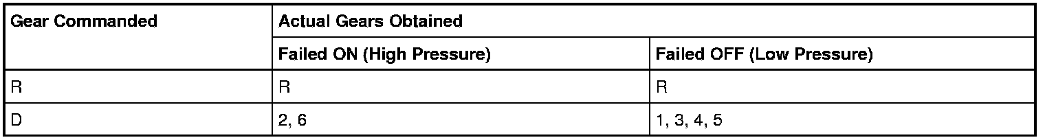 Shift Solenoid Failure Mode Chart Failed ON or Failed OFF