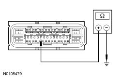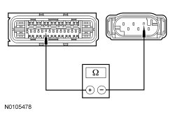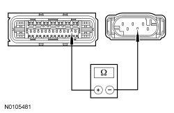 - Measure the resistance between ABS module C155-18, circuit 4-CF67 (GY/RD), harness side and ground, and between C155-19, circuit 5-CF67 (BU/RD), harness side and ground.