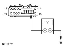 - Measure the voltage between the ACM (Audio Front Control Module) C290A-15, circuit 50-MD15 (GY/RD), harness side and ground.