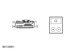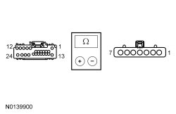 - Measure the resistance between the ACM (Audio Front Control Module), harness side and ground:
