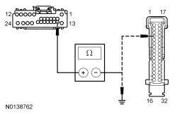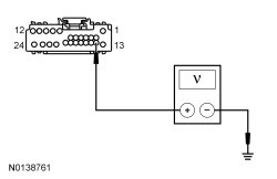 - Measure the voltage between the ACM (Audio Front Control Module) C290A-14, circuit 4-GB10 (GY/OG), harness side and ground.