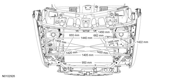 NOTE: A structural frame rail sectioning kit is available for the front frame rail section. It is mandatory to maintain factory body dimensions when carrying out any repair procedure to the frame rails. Refer to Frame Members .