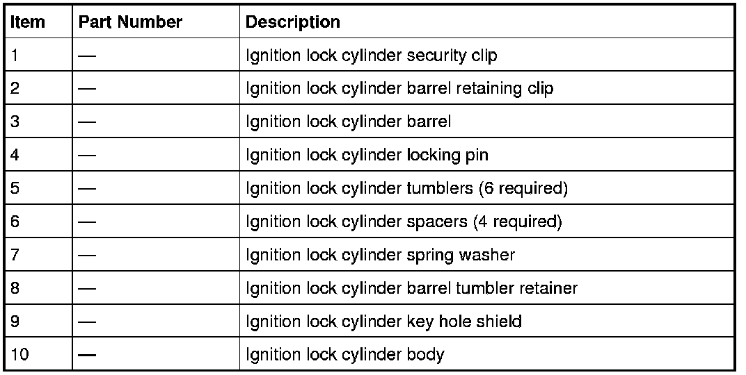 1. NOTE: The tumblers required can be determined from the vehicle keycode. If necessary, the factory keycode can be obtained from authorized dealership personnel.