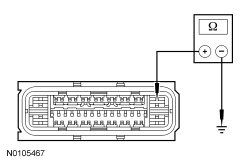 - Measure the resistance between ABS module C155-47, circuit 91-CF13 (BK/BU), harness side and ground.