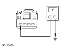 - Measure the voltage between SASM (Steering Angle Sensor Module) C226-4, circuit 15-CE8 (GN/RD), harness side and ground.