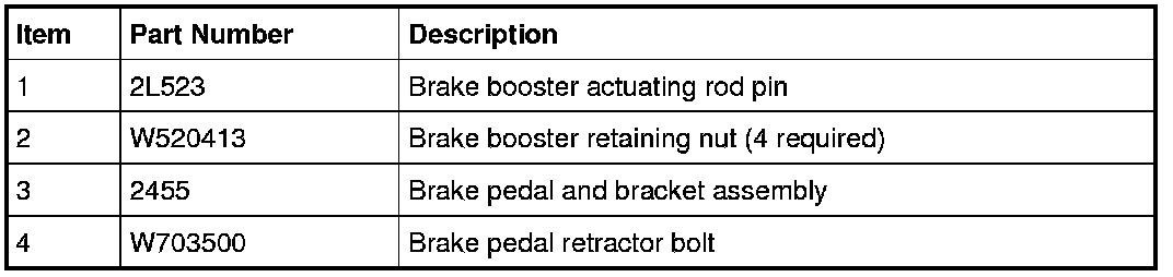 3. Remove the brake booster actuating rod from the brake pedal in the following sequence.