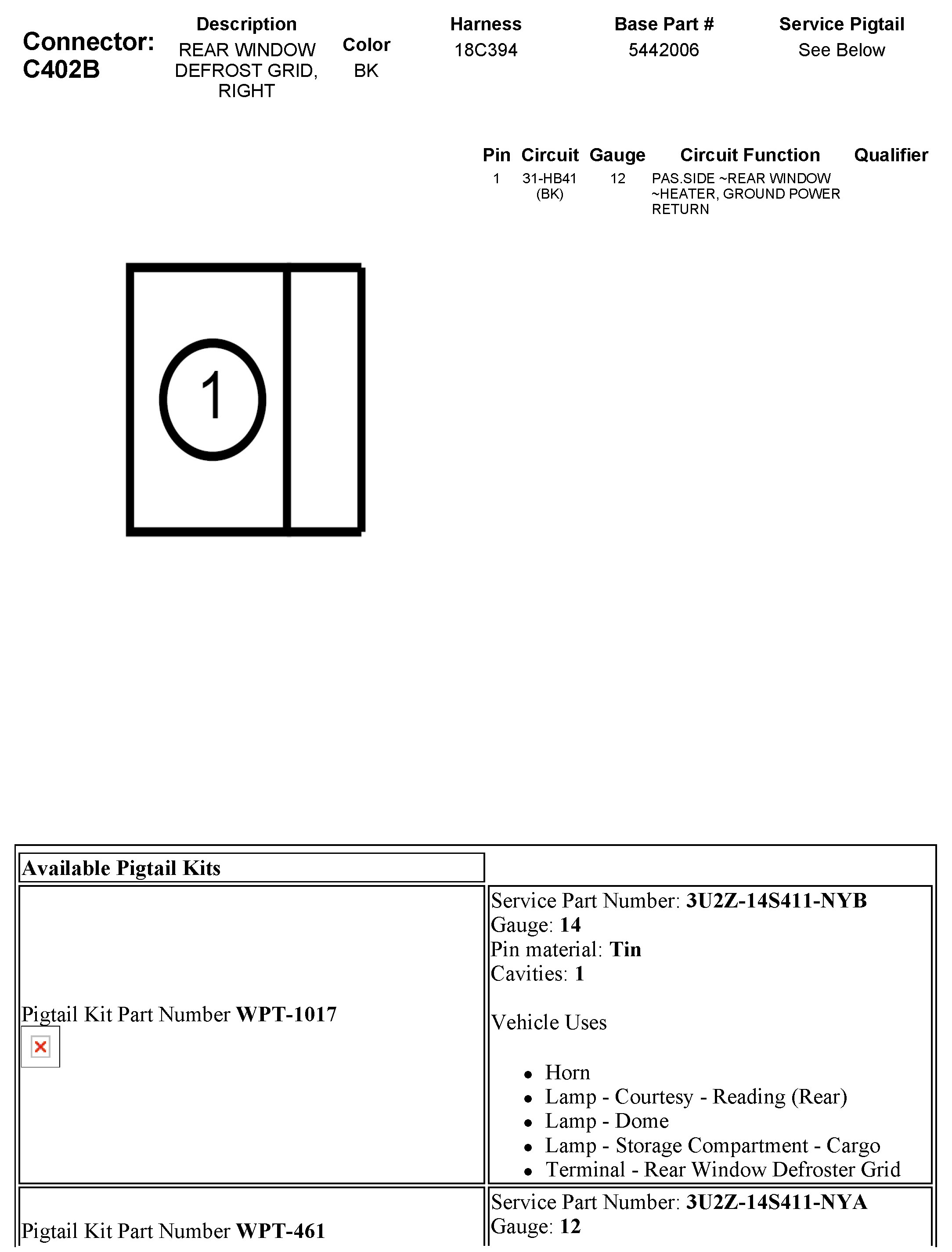 C402B Rear Window Defrost Grid, Right