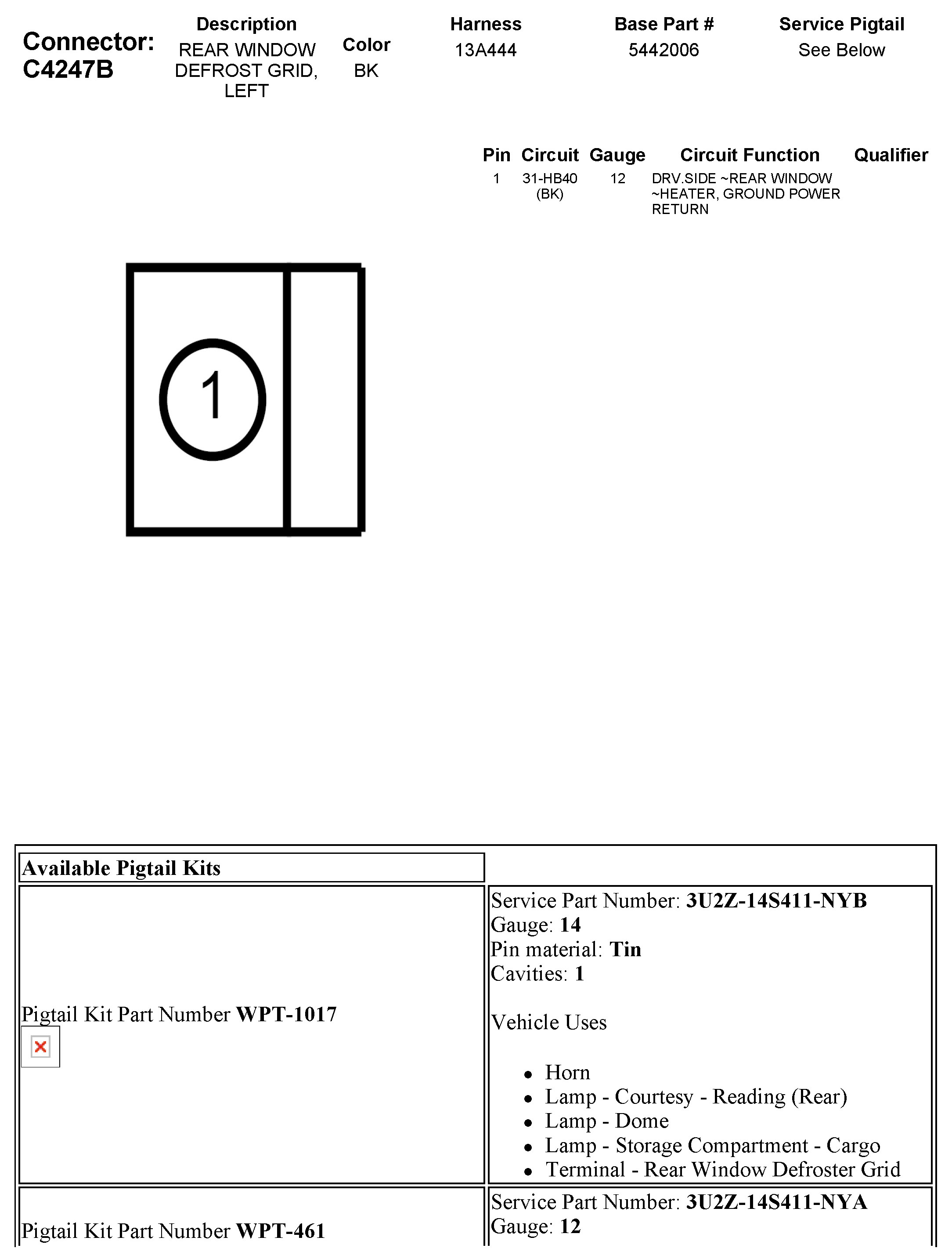 C4247B Rear Window Defrost Grid, Left