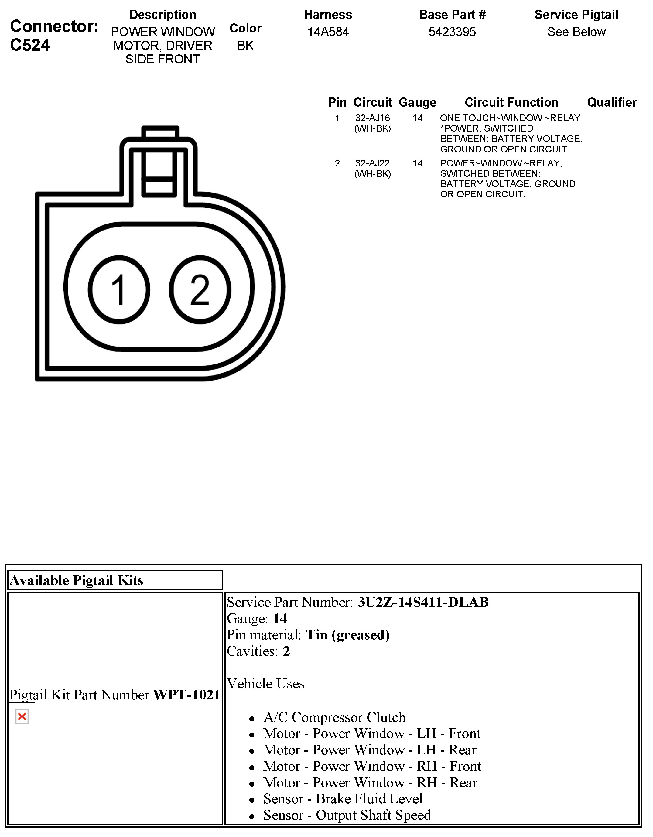 C524 Power Window Motor, Driver Side Front