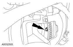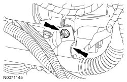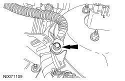 22. Position the Heated Oxygen Sensor (HO2S) and Catalyst Monitor Sensor (CMS) wire connector bracket and install the nut.