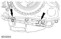 29. Install the 2 lower bellhousing-to-oil pan bolts.