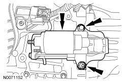 8. Connect the starter motor electrical terminals and install the 2 nuts.