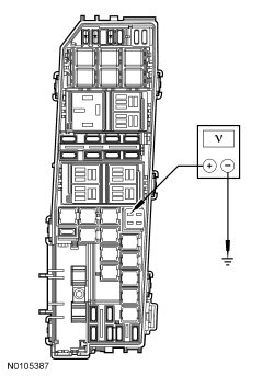 - Measure the voltage between ground and PCM C175B-2, circuit 91S-RE8 (BK/YE), harness side.