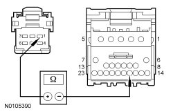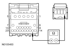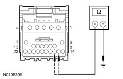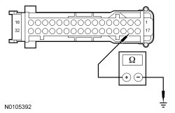 - Measure the resistance between ground and IC (Instrument Cluster) C220A-18, circuit 15S-FA90 (GN/BK), harness side.