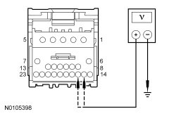 - Measure the voltage between ground and GEM (Generic Electronic Module) C201C-20, circuit 29-DK20 (OG/GN), harness side.