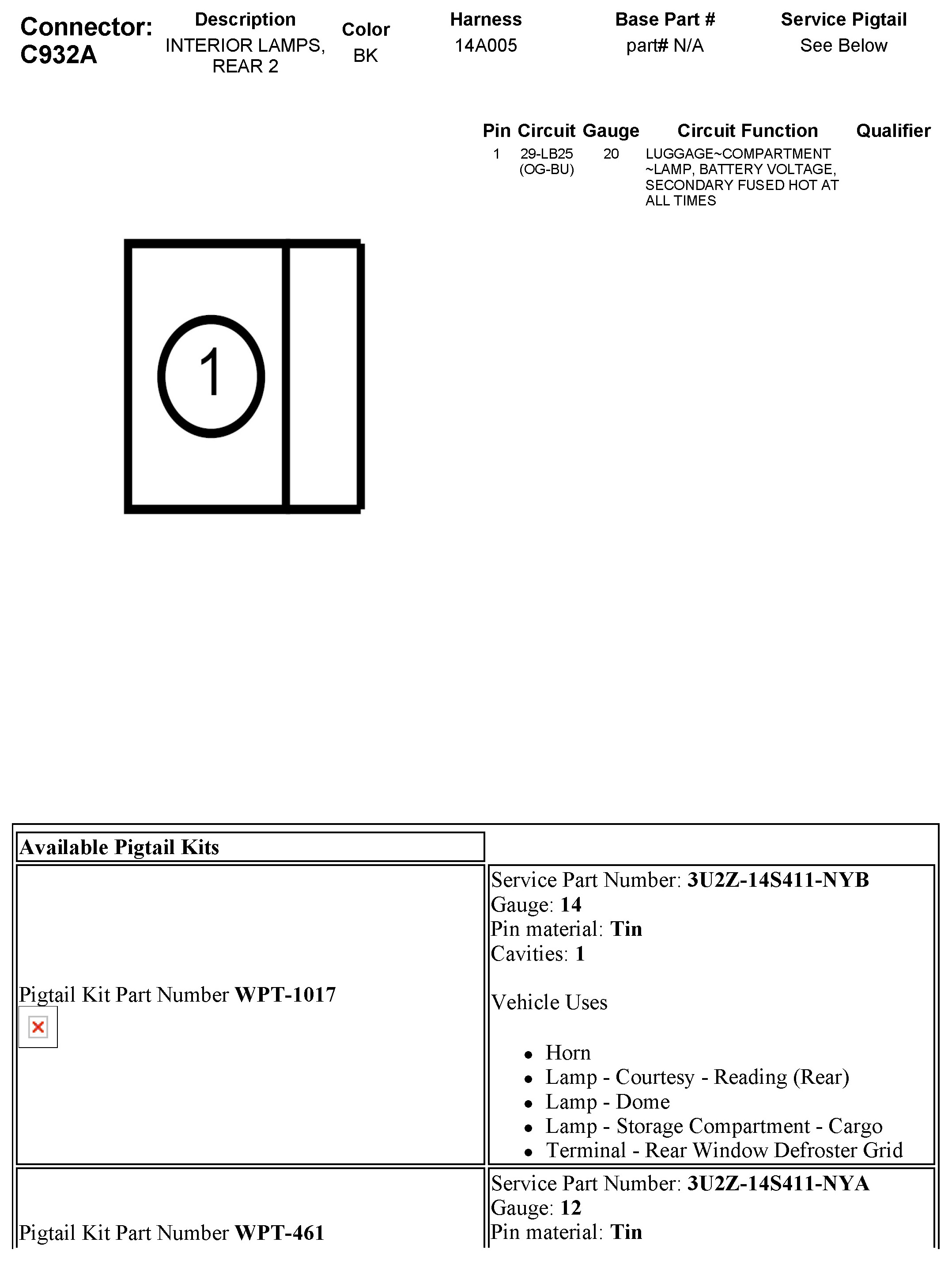 C932A Interior Lamps, Rear 2