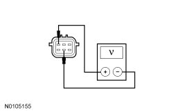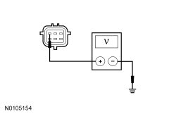 - Measure the voltage between the LH rear lamp C414-1, circuit 15S-LD6 (GN/YE), harness side and the LH rear lamp C414-5, circuit 31-LF23 (BK), harness side; or between the RH rear lamp C417-1, circuit 15S-LD12 (GN/YE), harness side and the RH rear lamp C417-5, circuit 31-LF24 (BK), harness side.