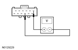 - Measure the voltage between the customer access block connector C3509-6, circuit 30-NC12 (RD), harness side and the customer access block connector C3509-10, circuit 31-LG12 (BK), harness side.
