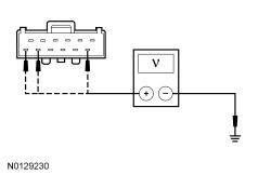 - Measure the voltage between the customer access block connector, harness side and ground as follows: