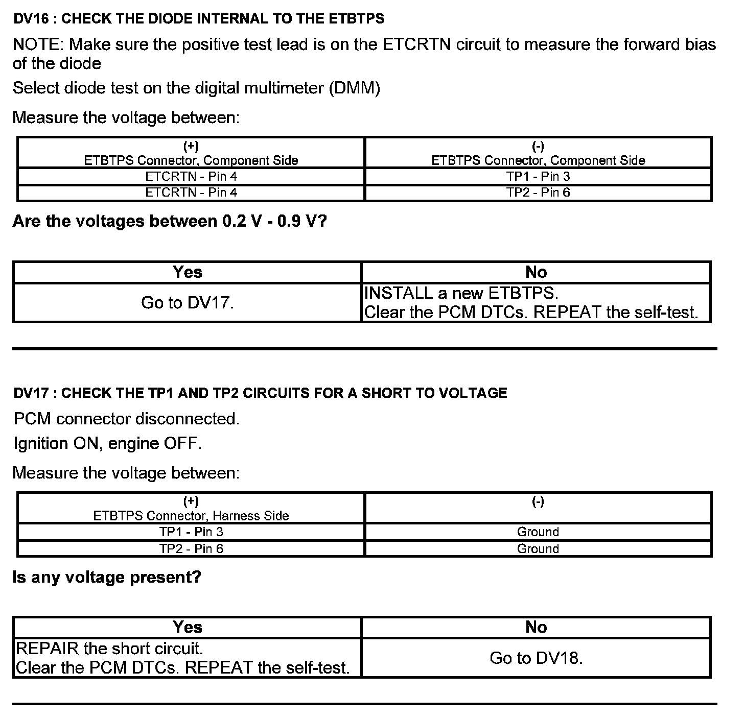 Test DV: Throttle Body Assembly Electronic Throttle Control (ETC)