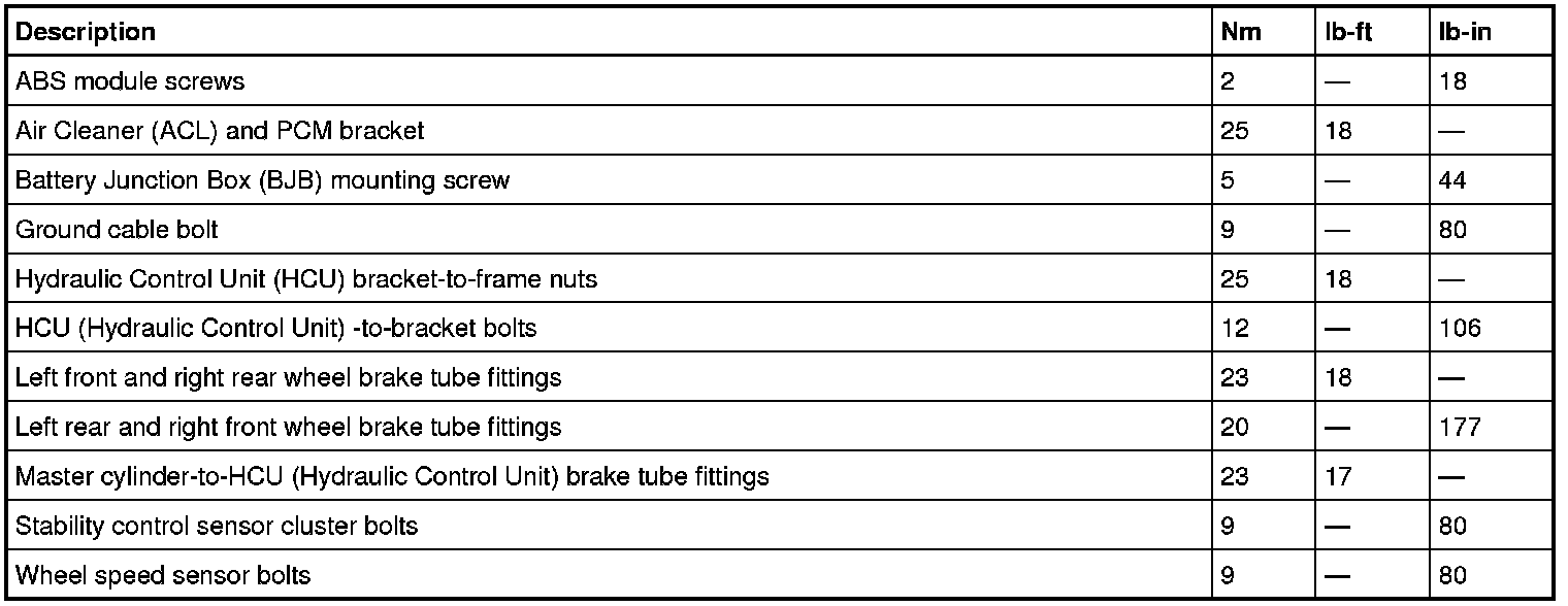 Torque Specifications