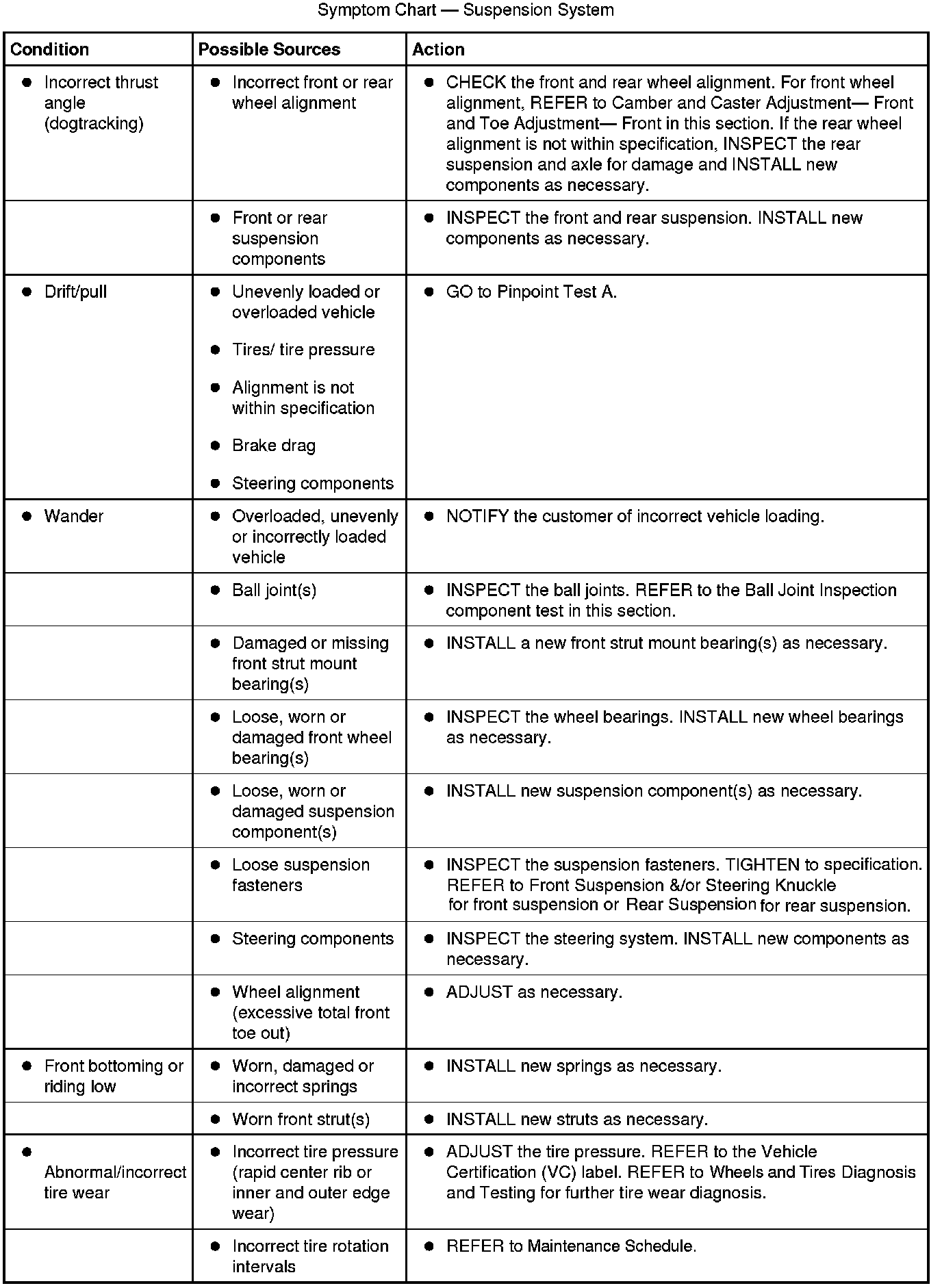 Symptom Chart - Suspension System