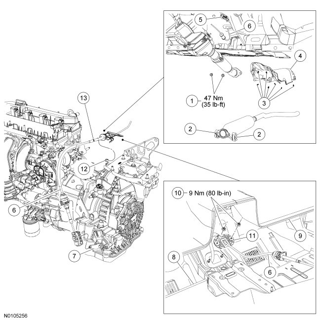 5. Disconnect the front exhaust pipe and detach the exhaust hanger isolators. Discard the gasket.