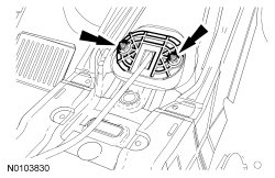 8. NOTE: When installing the selector lever cable, make sure that the selector lever cable locking tabs are locked in place and the selector lever cable end is snapped onto the ball stud. Press the selector lever cable into the selector lever cable bracket and listen for the selector lever cable to click in place. Pull back on the selector lever cable to make sure that it is locked into the selector lever cable bracket. Also make sure that the selector lever cable end is correctly installed onto the ball stud. Pull back on the selector lever cable end to make sure that the selector lever cable end is correctly installed.