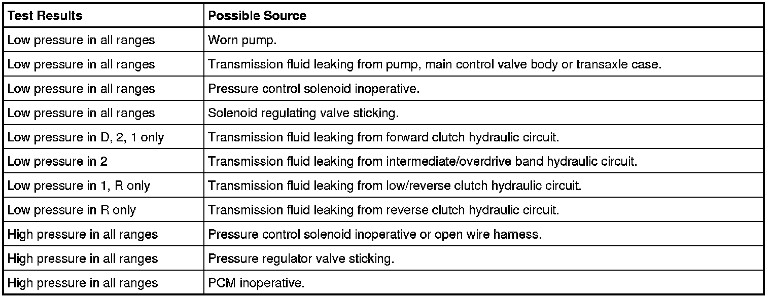 Line Pressure Diagnosis Chart