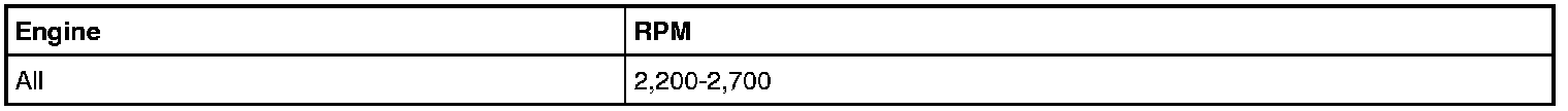 Press accelerator pedal to floor Wide Open Throttle (WOT) in each range. Record rpm reached in each range. Stall speeds should be as follows: