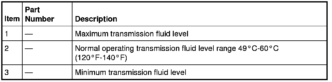 NOTICE: The vehicle should not be driven if the transmission fluid level is below the bottom line on the transmission fluid level indicator and the ambient temperature is above 10°C (50°F).