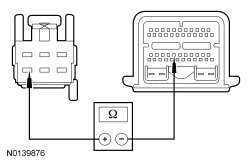 - Measure the resistance between floor shifter C3245-6, circuit 15S-TA21 (GN/BK) and ground.