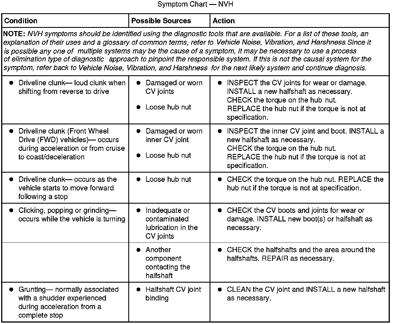 Symptom Chart - NVH
