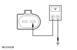 - Measure the voltage between LH window control switch C3293A-2, circuit 15-AJ7 (GN/BU), harness side and ground.