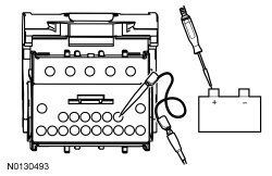 NOTICE: The following step uses a test light to simulate normal circuit loads. Use only the test light recommended in the Special Tools table at the beginning. To avoid connector terminal damage, use the Flex Probe Kit for the test light probe connection to the vehicle. Do not use the test light probe directly on any connector.