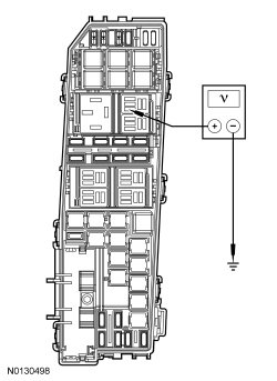 - Measure the voltage between left heated windshield relay socket pin 1, circuit 15-HB7 (GN/BU), and ground.
