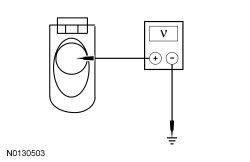 - Measure the voltage between the inoperative heated windshield defrost grid C1531-1, circuit 64S-HB12 (BK/BU) (LH) or C1532-1, circuit 64S-HB25 (BK/BU) (RH), harness side and ground.