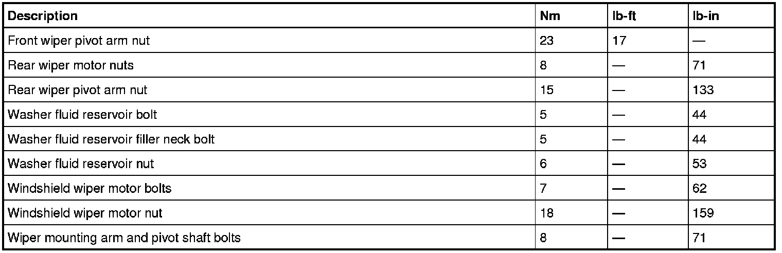 Torque Specifications