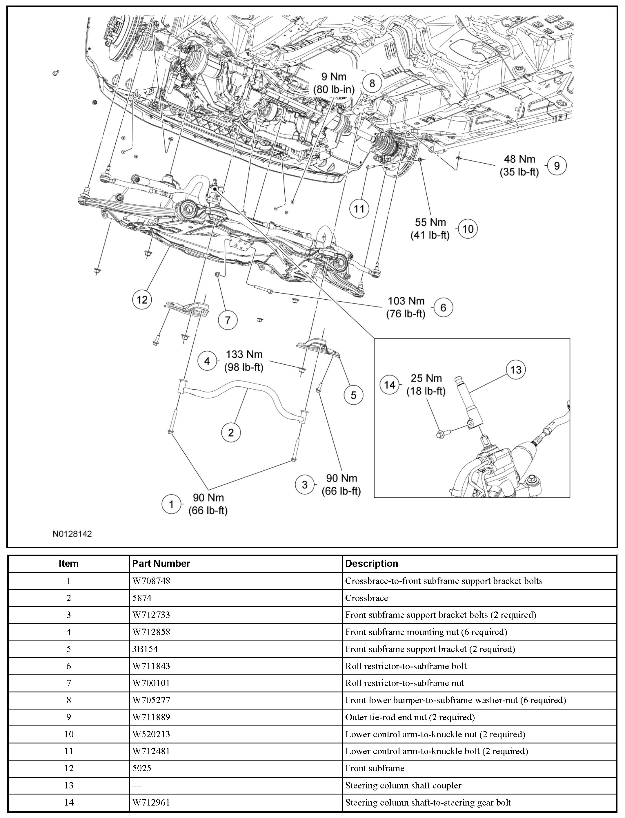 NOTICE: Suspension and subframe fasteners are critical parts because they affect performance of vital parts and systems and their failure may result in major service expense. A new part with the same part number must be installed if installation becomes necessary. Do not use a replacement part of lesser quality or substitute design. Torque values must be used as specified during reassembly to make sure of correct retention of these parts.