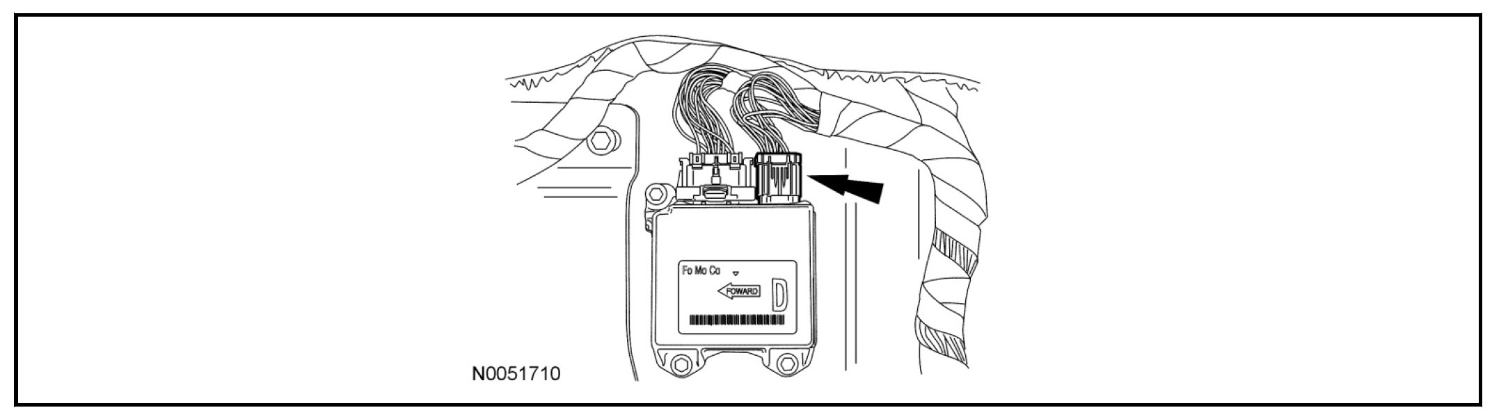 - NOTICE: Do not push on the connector so that the lever pivots and seats itself. Light pressure is needed to get the connector into position on the Restraints Control Module (RCM) before using the lever to fully seat the connector.