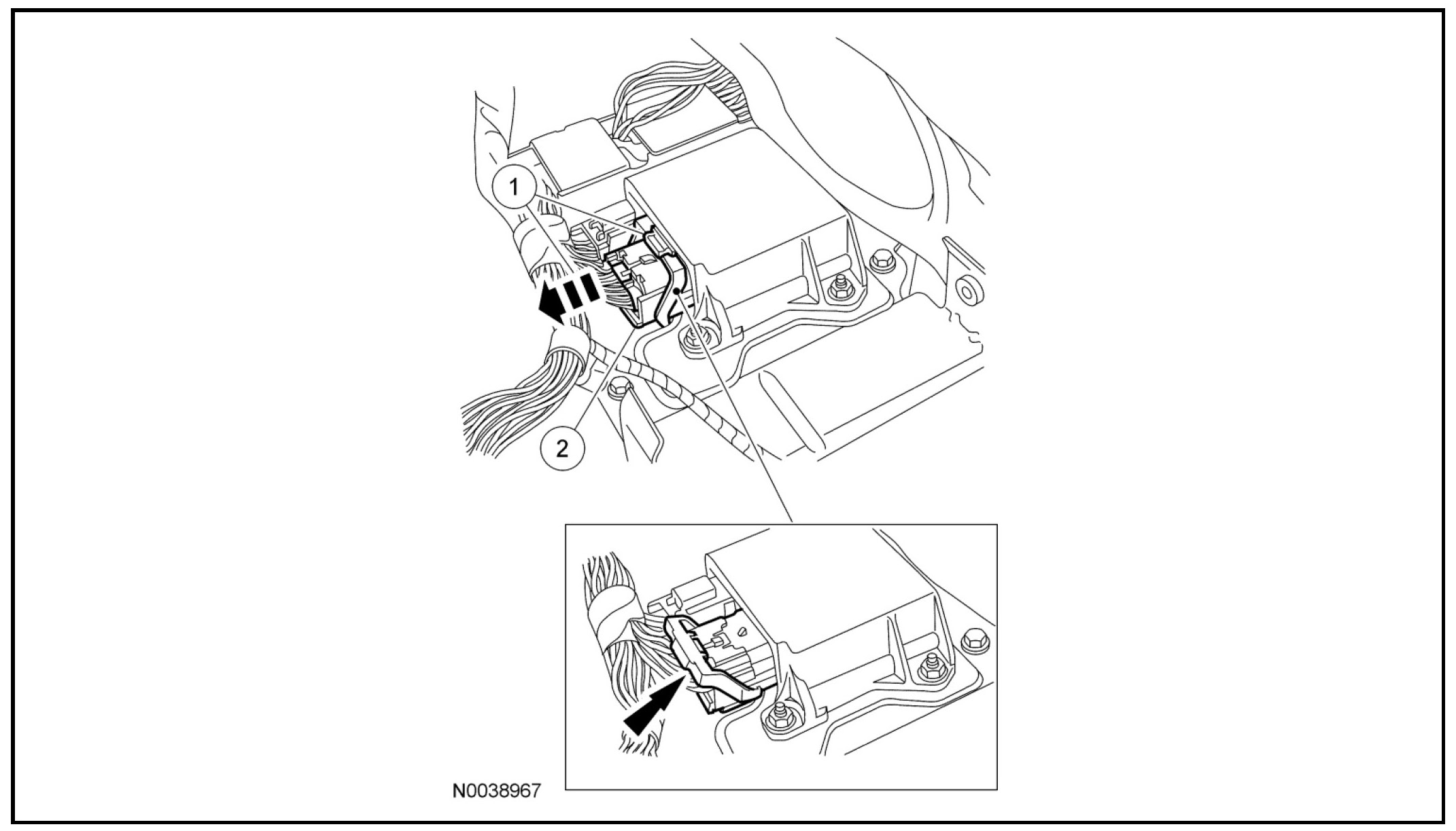 - Using the connector position assurance lever, pivot it toward the RCM, drawing the connector into the RCM.