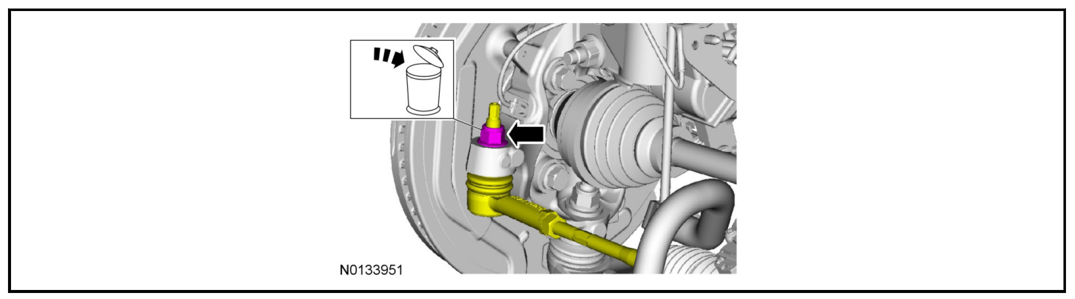 10. NOTICE: Use care when releasing the lower arm and knuckle into the resting position or damage to the ball joint seal or CV boot may occur.