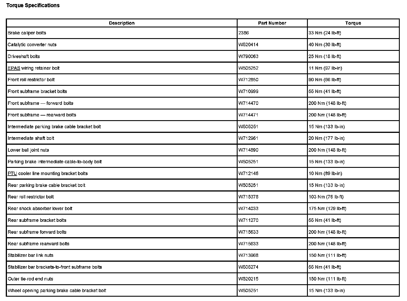 Subframe: Specifications